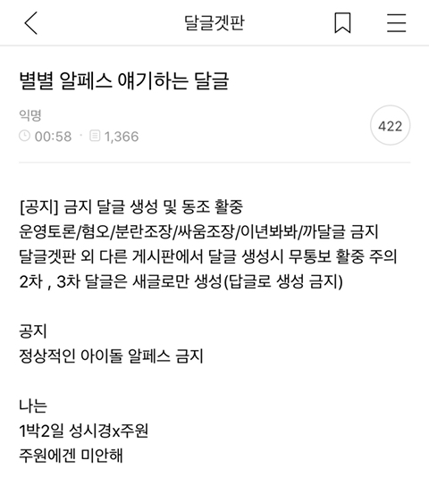 알페스, 나페스, 수위글은 금지해주셨으면 합니다.
